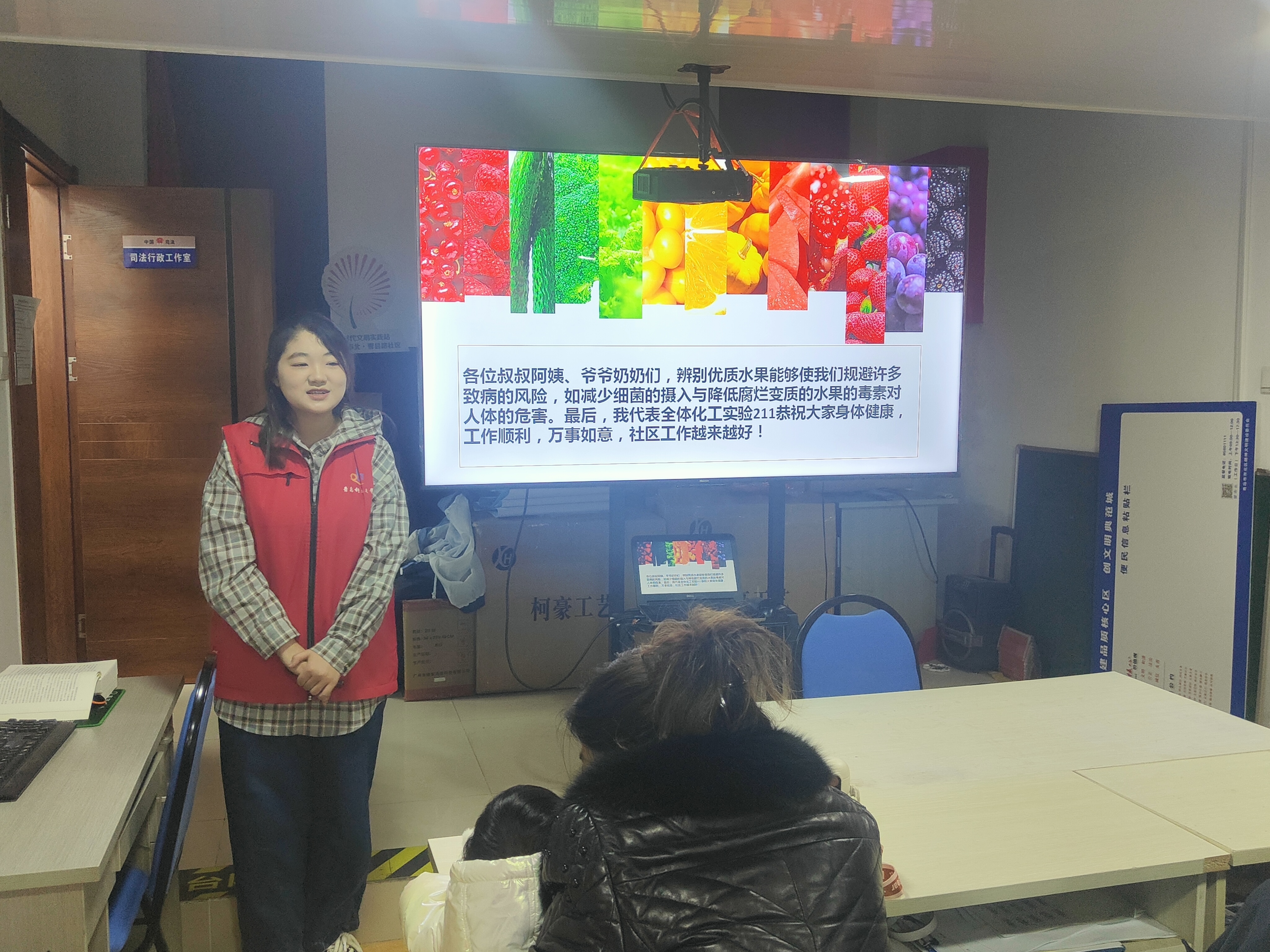 此次宣講活動(dòng)中,化工實(shí)驗(yàn)211的同學(xué)們首先為大家澄清困擾大眾的有關(guān)食品安全的謠言,并詳細(xì)介紹了農(nóng)產(chǎn)品加工、運(yùn)輸、儲存和烹飪過程中的安全要點(diǎn)。他們特別強(qiáng)調(diào)了家庭食品安全的重要性,教授居民如何識別新鮮食材,如何處理和保存食品,以及如何避免交叉污染等問題。為了讓宣講更加貼近居民的生活,學(xué)生們還特意準(zhǔn)備了食品安全小貼士,用通俗易懂的語言解答了居民在日常生活中常遇到的食品安全疑問。活動(dòng)結(jié)束時(shí),他們還通過設(shè)置互動(dòng)環(huán)節(jié)增強(qiáng)了居民的參與感和學(xué)習(xí)興趣。
